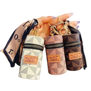 Bolsa de batom em couro PU para segurança com chaveiro em várias cores porta-batom mini bolsa para moedas chaveiro