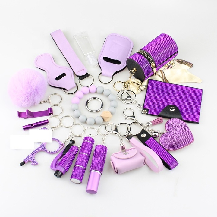 Mulheres Rhinestone Bling Personal Self Defense Keychain Set Bulk Acessórios Self Defense Keychain for Women